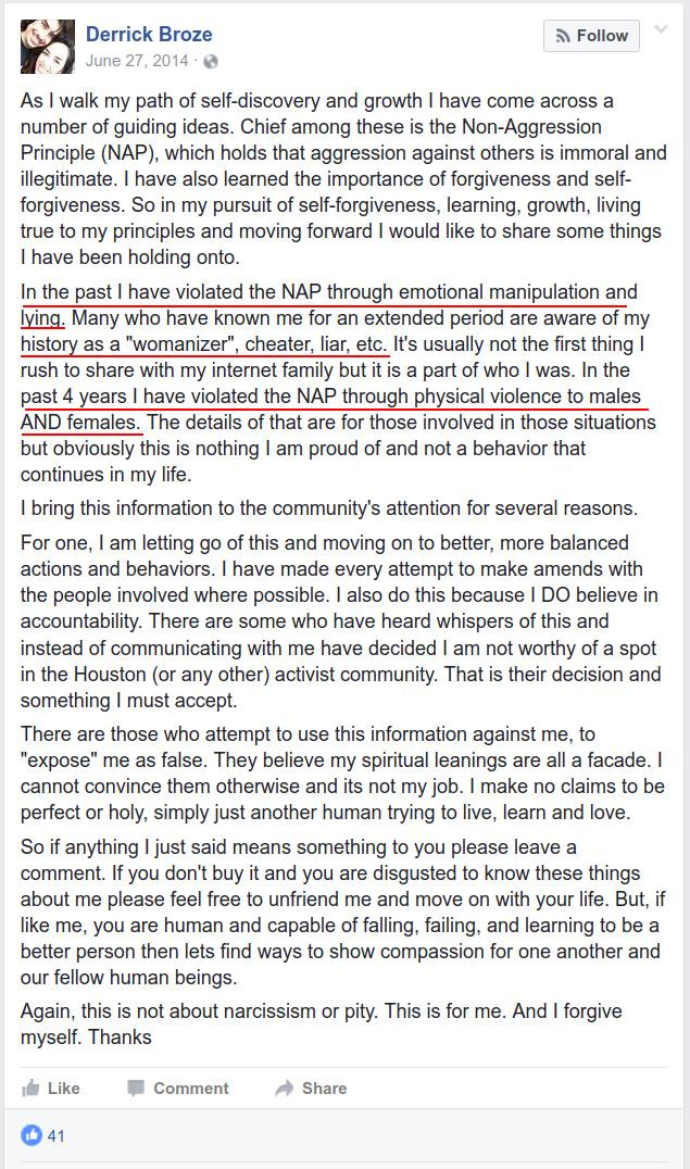 This is a no one to me. Apparently he has a following on Substack though. But it’s amusing. A lot of people interact with Broze and leave thinking he’s a cult leader. For a long time, he would engage with other local groups. His ideology was always naked self-opportunism. He claimed to be an anti-government anarchist for years, and then he ran for Mayor. He dedicated himself to the campaign. He pulled 686 votes coming in 10th for Houston Mayor. It’s hard to build up a movement of anarchists to support your electoral aspirations.