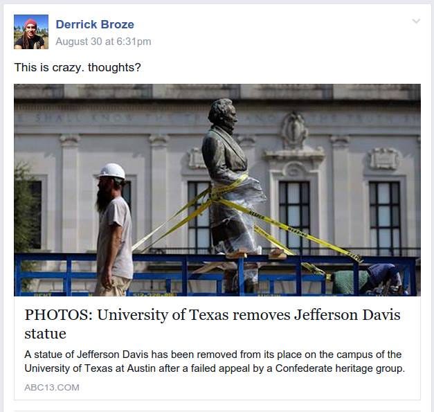 Can you imagine opposing the removal of a Jefferson Davis statue? I mean ostensibly he’s for removing the entire public education system, but the racist statue? That he’ll speak out for.
