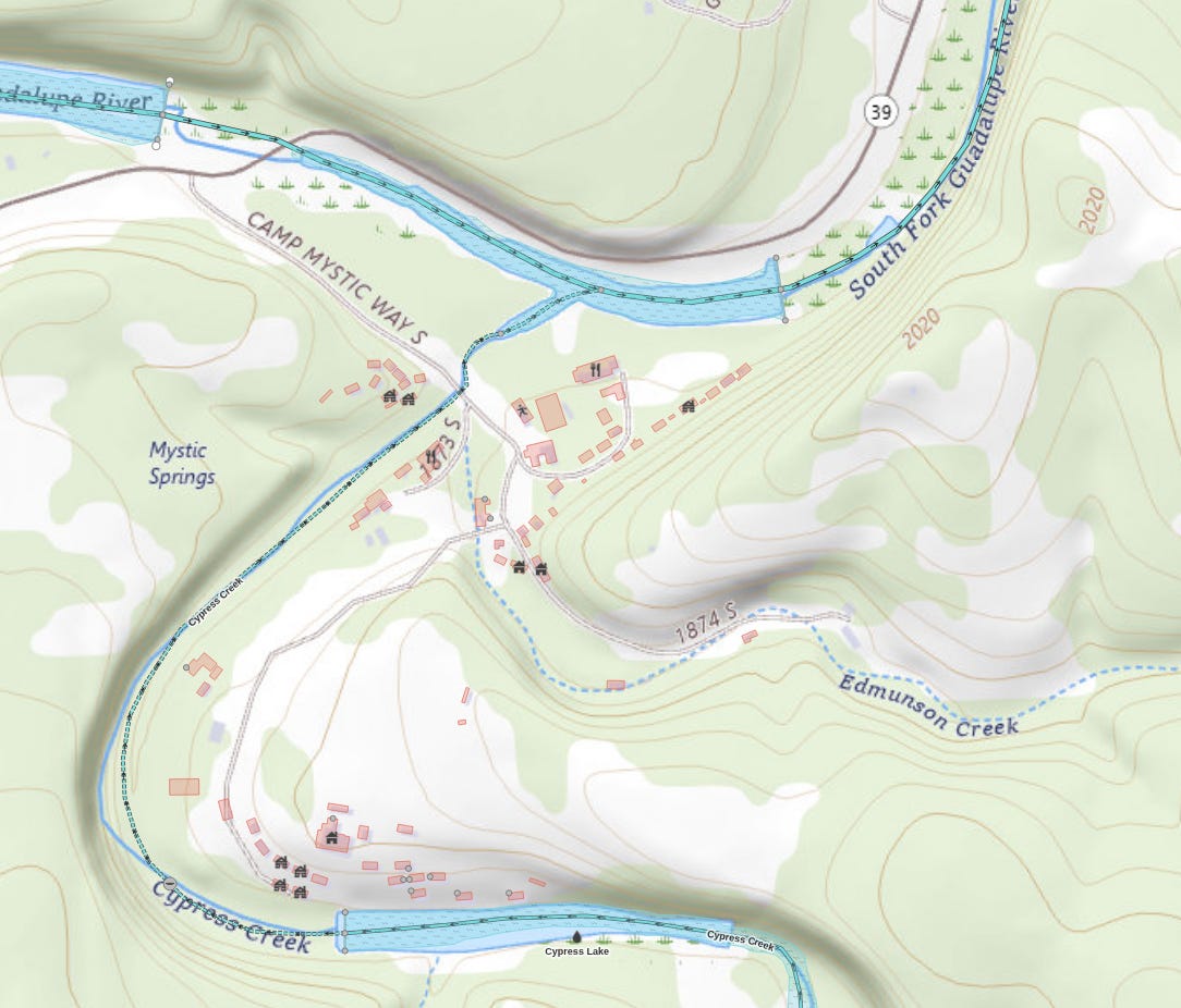 If you want to see both camps together the Camp Mystic Guadalupe River, and Camp Mystic Cypress Lake, then here is a map for you! (Requested in pvmsg)